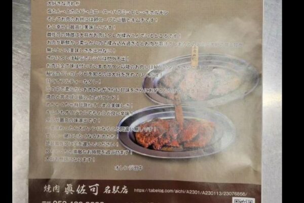 名古屋・名駅近くにある『焼肉 眞佐可(まさか) 名駅店』は、創業50年以上の歴史を誇る鶴舞本店の味を受け継ぐ2号店です。立ちのぼる煙と香ばしい香りが食欲を誘う、昔ながらのもくもく系大衆焼肉店。創業当時から受け継ぐ名物「とんちゃん」に加え、本店にはない「和牛ハラミ」などもご用意。磨き続けてきた伝統の味を気軽にお楽しみください。