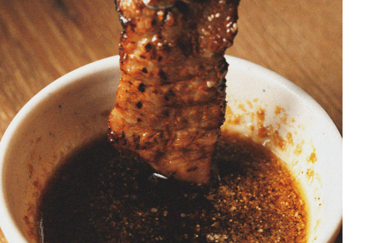 眞佐可の味を支えるのは、創業当時から受け継がれる門外不出の秘伝ダレ。そのレシピを知るのは、わずか三人のみです。果実の甘みとほどよい酸味が織りなすフルーティーな味わいは、肉の脂に負けない深いコクとキレを生み出し、肉の旨みを一層引き立てます。